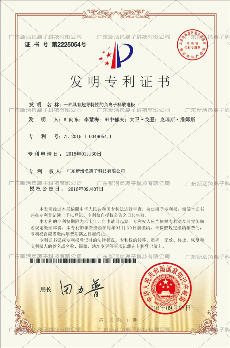 | ZL201510049054.1 | 一種具有超導特性的負離子釋放電極 |